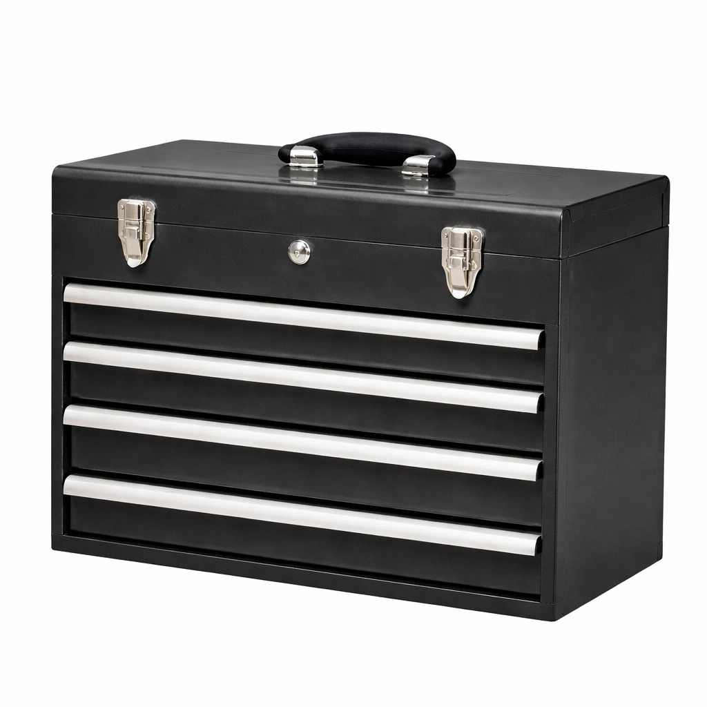 Werkzeugkiste Metall Schwarz mit 4 Schubladen 51x22x38 cm