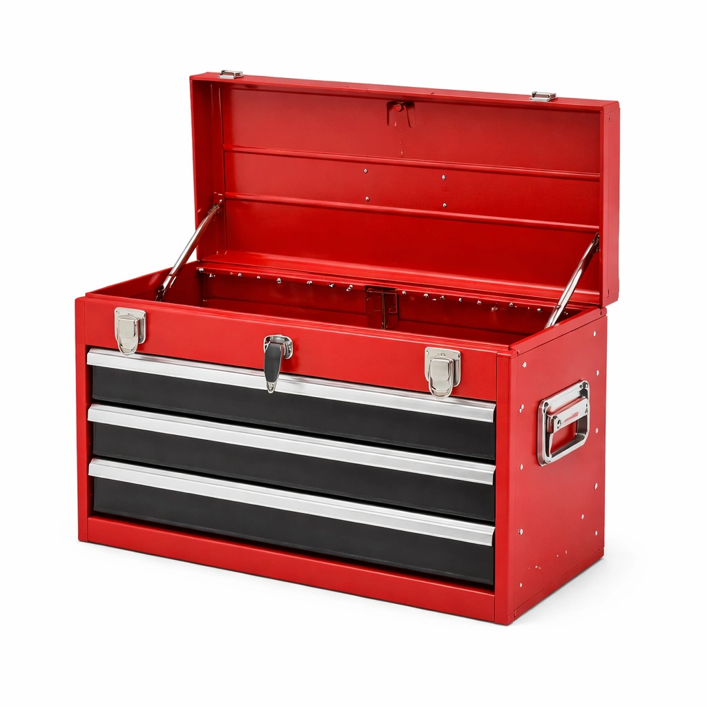 Werkzeugkiste Stahl Rot Schwarz mit 3 Schubladen