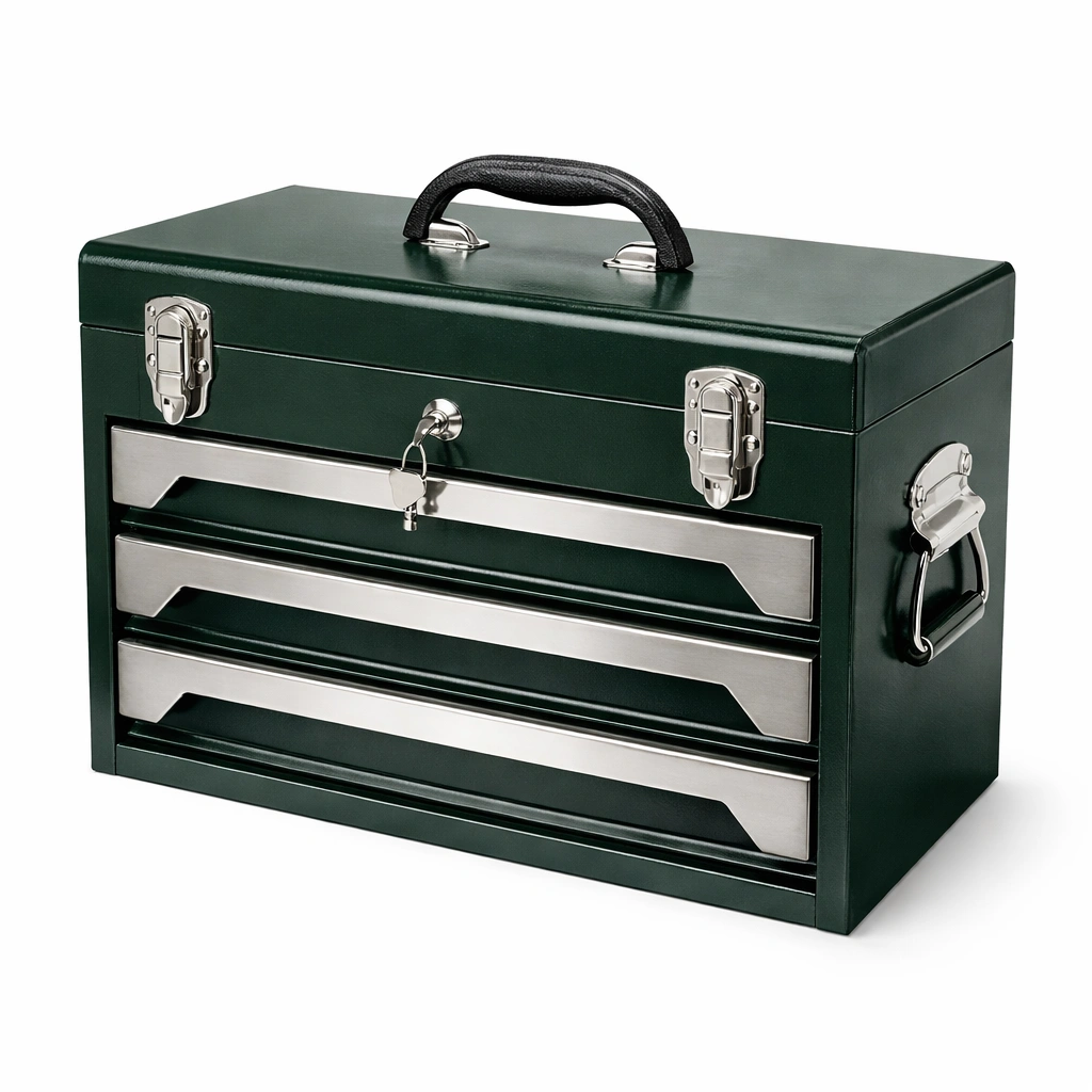 Werkzeugkiste Stahl Grün mit 3 Schubladen