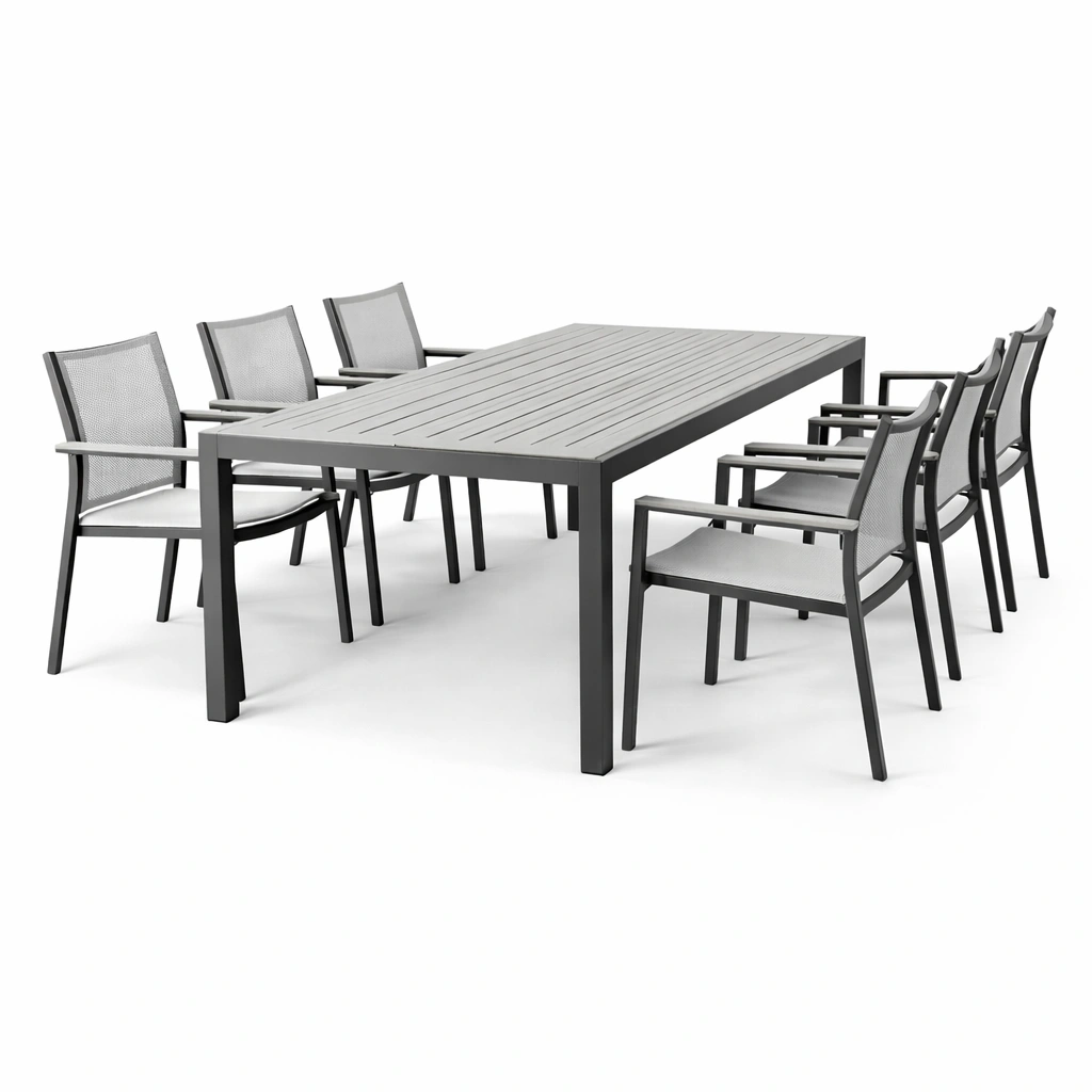 Essgruppe Aluminium Tisch und Stühle 7 teilig Grau